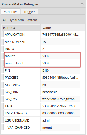 - The d4 Dynaform is displayed. The mount variable is set in the mount field that its value is assigned in the trigger before the Dynaform. Note that the mount labes is still with the previous value assigned in the previous Dynaform.