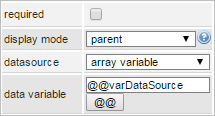 This option assigns the values of a control using a defined array variable. It is suggested to use array variables for controls that need to be populated dynamically. When the "Array Variable" option is selected, the Data Variable property is displayed and the SQL and DB Connection properties are hidden.