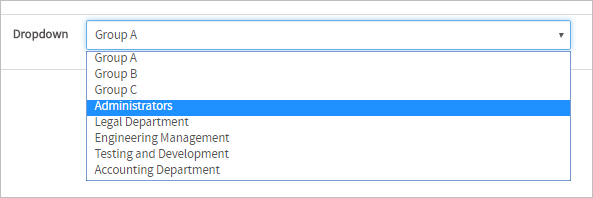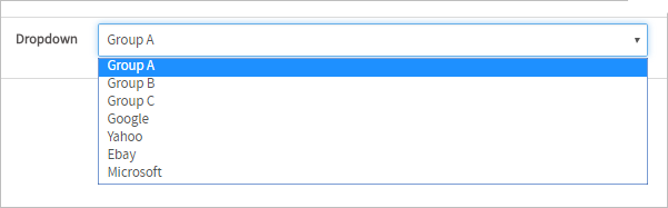Create a Dynaform and drop a Dropdown control inside it. In the Create/Select Variable window, create a string variable named "groupDropdownVar" and define some options. These options will be displayed before the ones assigned in the array variable.