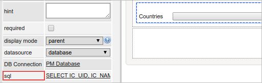 Click on the dropdown control field in the Dynaform, go to the SQL property and click on the ellipses ... to set an SQL query.