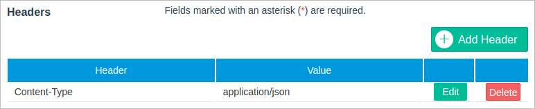 Headers: (Optional) Request headers, such as Authorization, Accept, Content-Type, etc. This section allows arbitrary HTTP headers to be added that the user might want to include with their request. Note that a header can contain all sorts of meta information that can be overridden or merged with another header during execution. For example, the user can include the Content-Type header with the text encoding used in the message body, as shown in the image below.