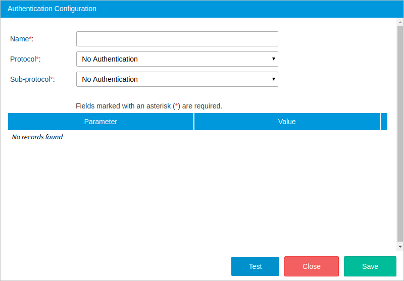 The no authentication sub-protocol is used when credentials are not required to access the service or when the user needs to set a custom header with their own access token and bearer.