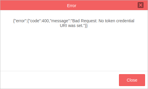 If a problem occurs, a red dialog message will be displayed containing the error information.