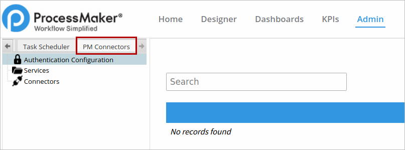 After the plug-in is enabled, a new tab named PM Connectors will be added next to the Logs tab under the Admin section.