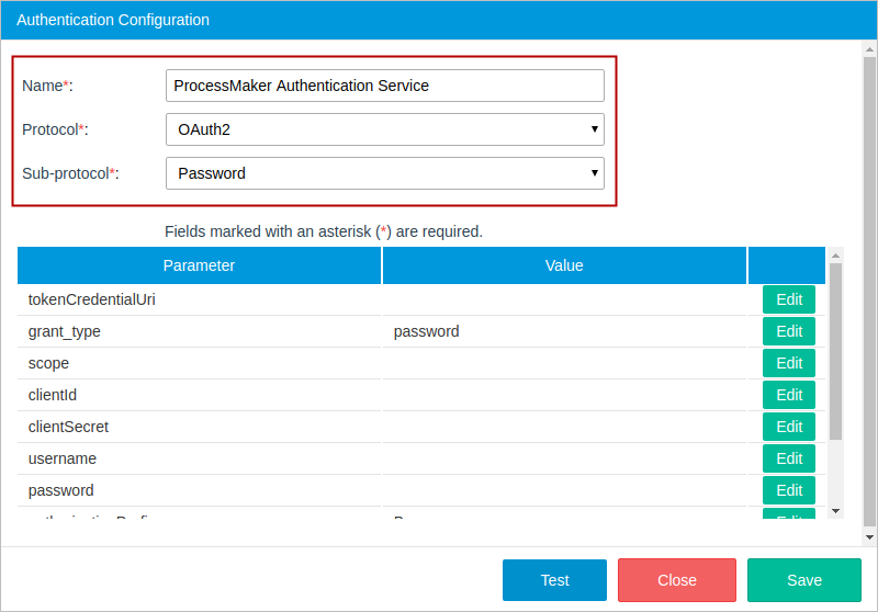 - Protocol: ProcessMaker uses OAuth 2.0 to obtain access to ProcessMaker services. Therefore, select OAuth2 from the menu.