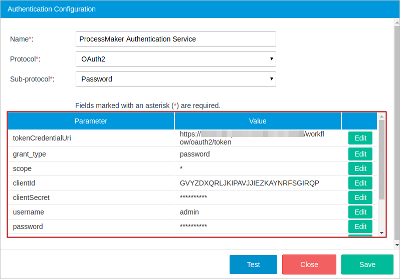 - tokenCredentialUri: OAuth2.0 authorizes the external application and logs into ProcessMaker in a single step by directly calling the