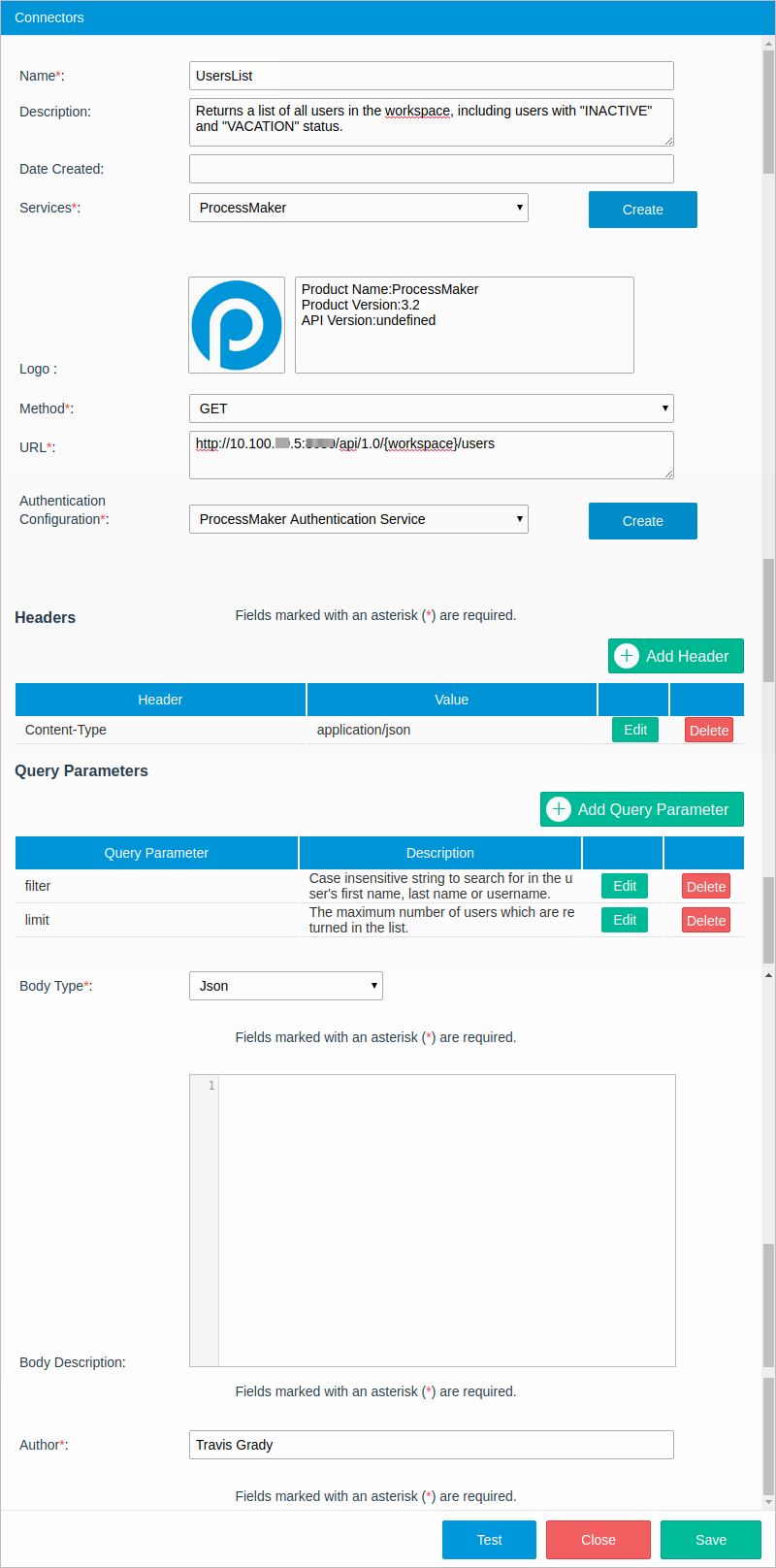 After setting these configurations (Authentication Configuration and Services), any ProcessMaker endpoint can be used by creating a connector.