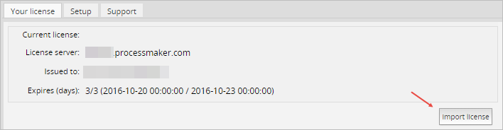 Warning: When a license file is imported into the ProcessMaker instance, ensure the original name of the license file provided to the customer from ProcessMaker has not changed. For example, if a duplicate license file already exists in the directory to which another copy of the license file is downloaded, the web browser may change the name of subsequent license files to avoid duplicate file names. If the imported license file does not have the file name provided to the customer from ProcessMaker, the license is invalid.