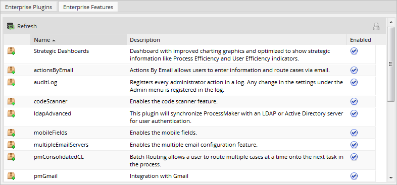 The ProcessMaker Enterprise Edition adds a series of proprietary plugins and 16 Enterprise features. Like the open source core, all the source code for the Enterprise Edition plugins can be viewed; however, the shared source license does not allow the plugin code to be changed or redistributed. For custom plugins, see Plugins.