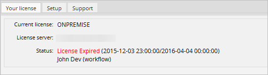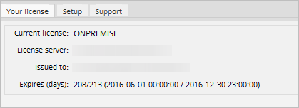 Once the license has been imported after the installation, the Your License tab shows information about the license: