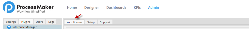 To change the license or review the information, go to ADMIN > Plugins > Enterprise Manager and select the Your License tab: