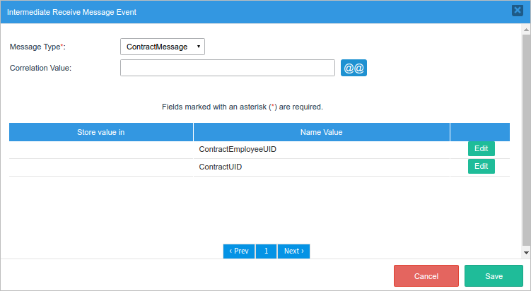 - Correlation Value: The correlation value defines the unique ID that will relate both events: the send message event and the receive message event.This value must be the same in both events.