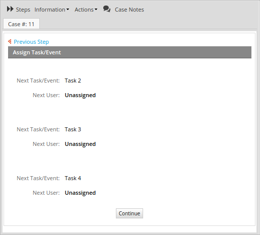 When a case is routed through this Parallel Gateway, the following screen will be displayed to the user.