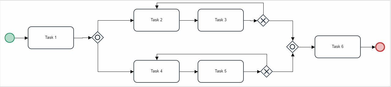 For example, when a flow is divided with a Parallel Gateway, the resulting parallel flow should be consolidated via another Parallel Gateway when required.