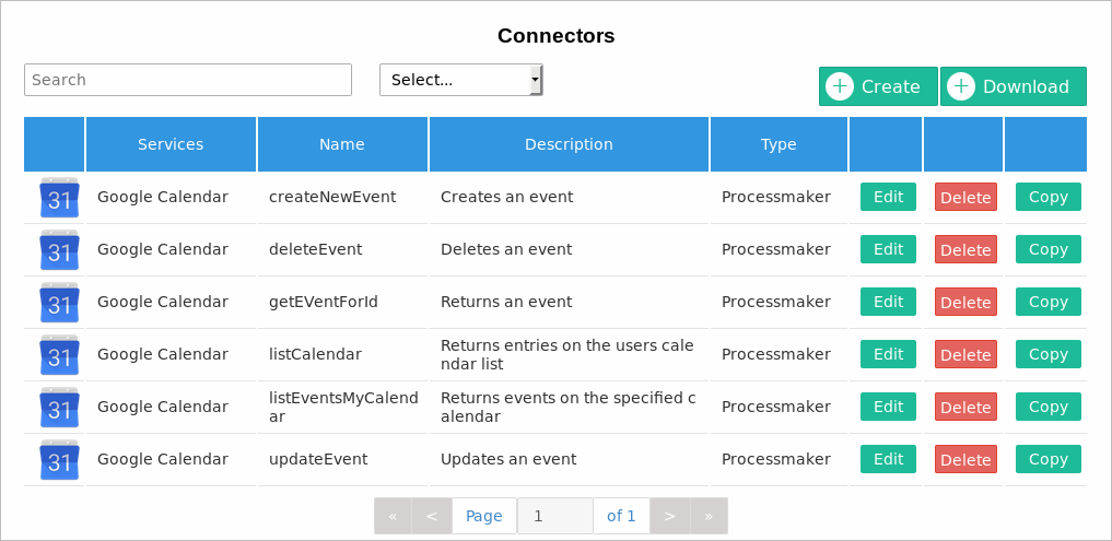 Note: After downloading all the connectors, the Google Calendar service, and the Service Account Google authentication configuration automatically download.