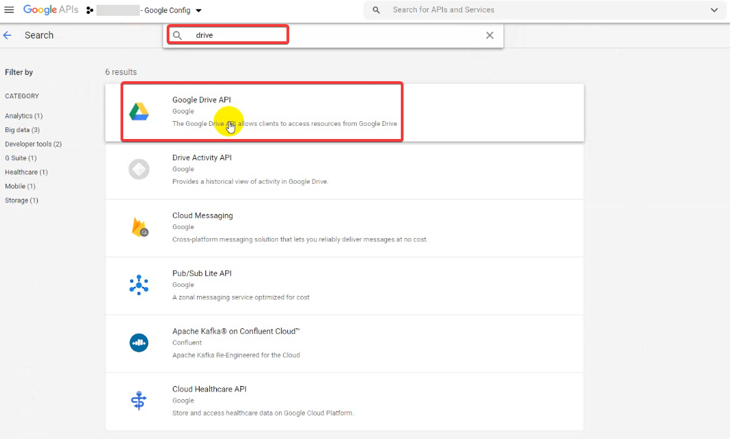- Click the Google Drive API icon or link Google Drive API to enable the Google Drive API.