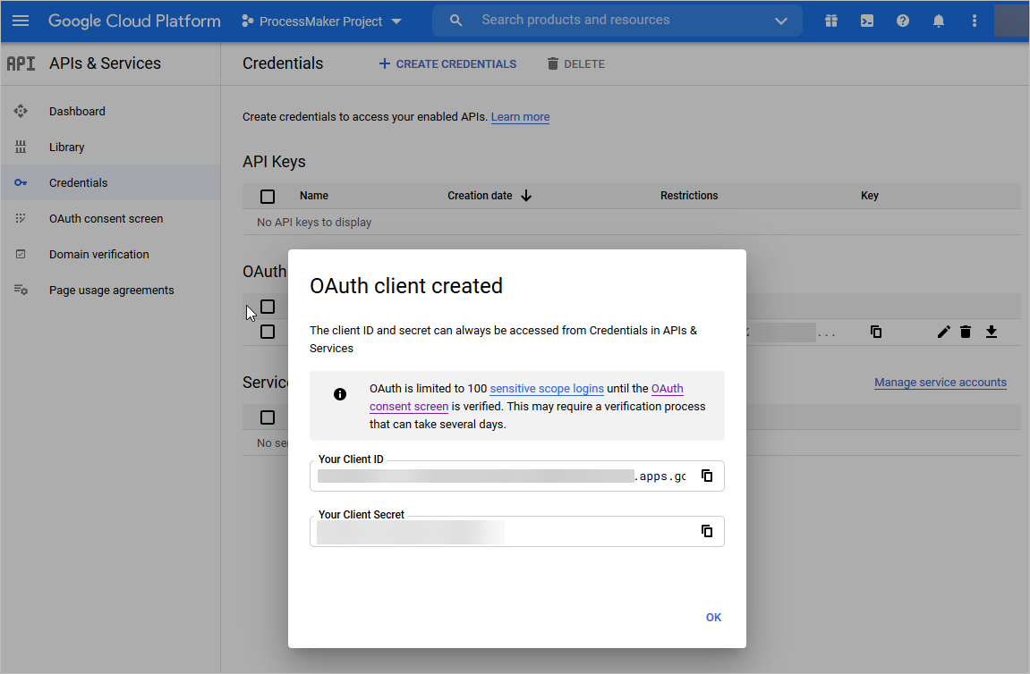 To generate the credential keys needed to integrate ProcessMaker Enterprise Connectors with a Google account, follow these steps: