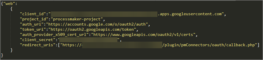 Copy the values provided on the .json file downloaded when generating the API Credentials on the Google Console Developer.