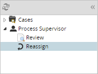 A supervisor can take over cases by going to HOME > Process Supervisors. The Process Supervisors tab may have one or two options, depending on the permissions assigned to the user supervisor: Review and Reassign.