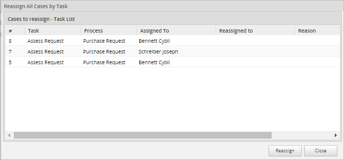 After selecting all cases to be reassigned, click the Reassign button and the Reassign All Cases by Task window displays.