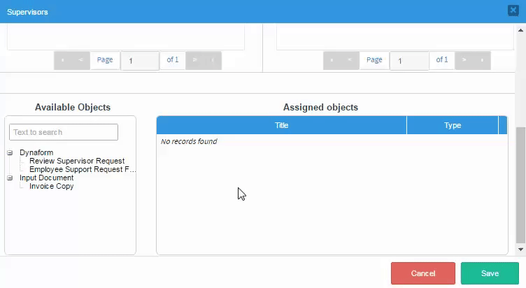 - Input Document: The list of all the input documents that exist in the process. By assigning an input document to the supervisor, they will be able to: