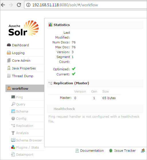 Between them, an instance named workflow already configured to be integrated with any ProcessMaker workspace and a template named workflow.solr.tar.gz to create new instances easily. Note that each Solr instance refers only to one ProcessMaker Workspace and a server can have more than one Solr instance running.