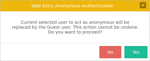 For old web entries modifications the ProcessMaker will change automatically the user by Guest, and a confirmation message is displayed when the Web Entry is saved.