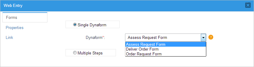 Single Dynaform: Choose this option to select only one Dynaform from the Dynaform dropdown. The user will be redirected to this specific Dynaform when accessing the Web Entry link.