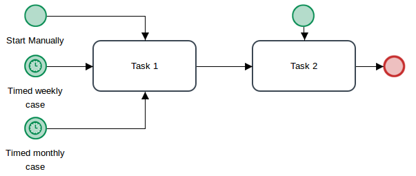 A: Start events can be attached to any task in the process, so it is possible to have multiple places to start a process. In addition, multiple start events can be added to the same task. For example, it is possible to initiate cases manually in the ProcessMaker interface, and also have Timer Start Events attached to the same task that initiate cases automatically.