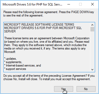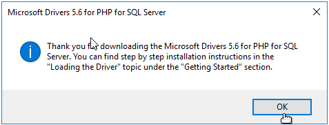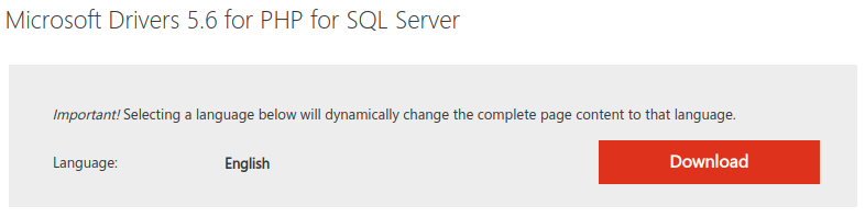 In the Microsoft Drivers 5.6 for PHP for SQL Server section, click Download.