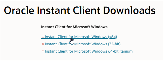 7. From the Oracle Instant Client Downloads select the link according to your server version.