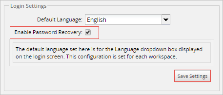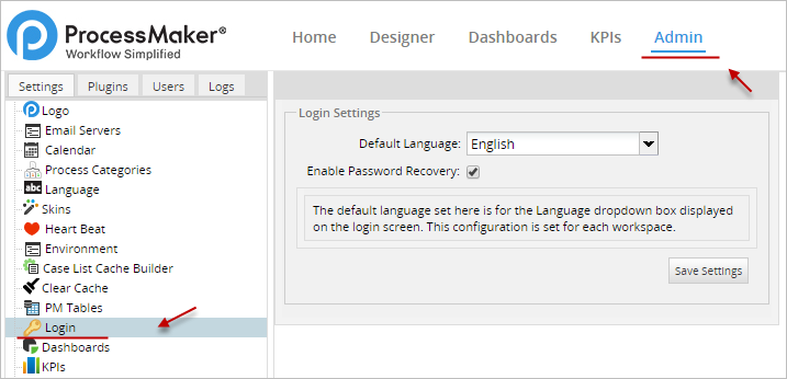Note: Users must have the PM_SETUP_LOGIN permission assigned to their role to access the ADMIN > Settings > Login option.