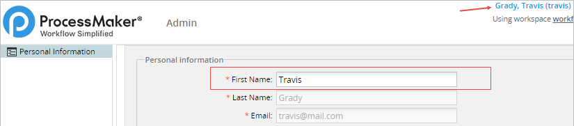 For example, if the user’s role contains the PM_EDIT_USER_PROFILE_FIRST_NAME permission (accompanied by the PM_USERS permission) then the first name of the user can be edited in the form.