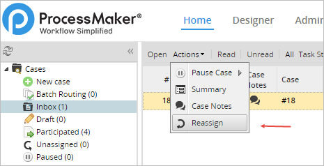 If the Process Supervisor user also has the PM_REASSIGNCASE_SUPERVISOR permission, the Reassign menu option will be available.