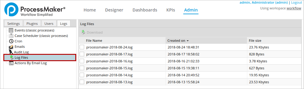 The PM_SETUP_LOGO permission allows users to edit the logo shown in the upper left corner. By default, ProcessMaker's logo appears at the top of the screen, but it can be replaced with the logo of your business or organization. This permission must be accompanied by the PM_SETUP permission to gain access to the ADMIN menu. For more information, please read the Logo information page.