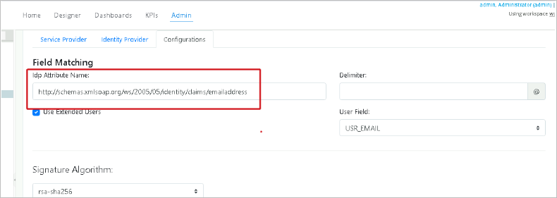 Enter the IDP Attribute name attribute on the Field Matching section in Configurations tab.