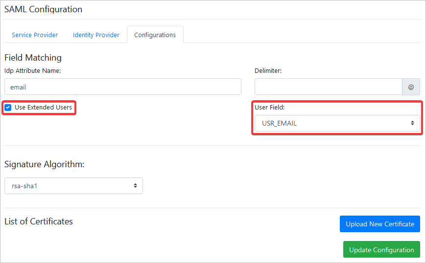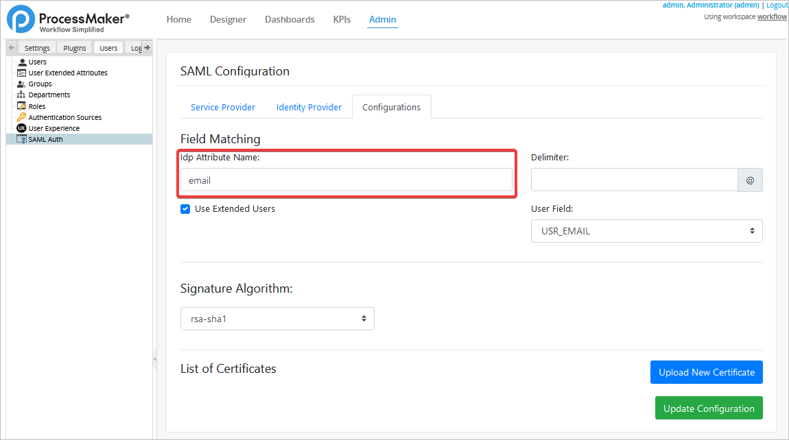 Enter the Idp Attribute Name value on the Field Matching section in the Configurations tab.