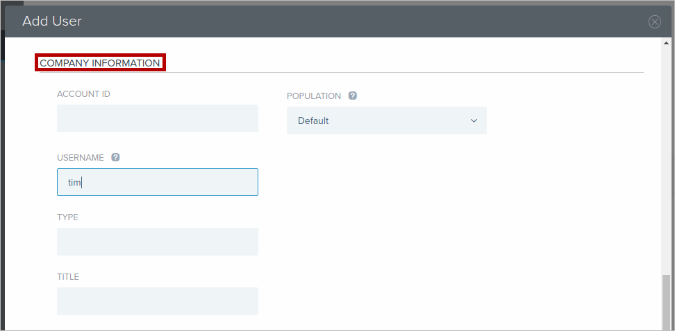 Note: In this example, we only fill with the basic information about the user.