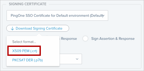 Select the .crt format, option and then the Signing Certificate is downloaded.
