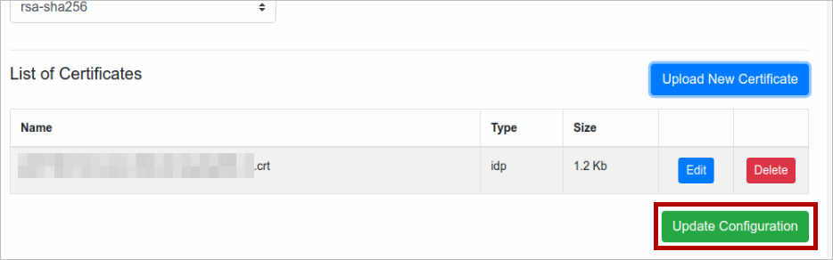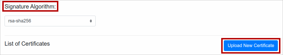 Select rsa-sha256 for the Signature Algorithm. Then click Upload New Certificate.