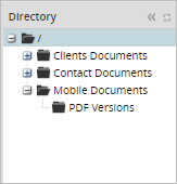 Folders display on the left side of the Directory panel, and are organized in a tree structure, as shown in the image below: