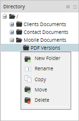 When right clicking on a folder, a menu containing the New Folder, Copy, Move and Delete options display.