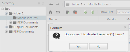 A confirmation box displays before deleting the files. Click Yes to delete the file, or No to close the box without deleting any files.