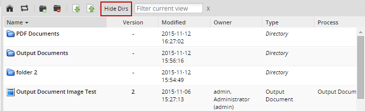 After clicking on Show Dirs and when showing the directories, the button changes its label to Hide Dirs.