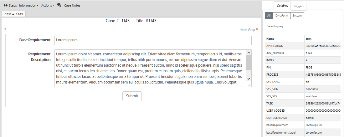 The ProcessMaker Debugger option helps see case variables and triggers when running cases. To find out more about it follow the ProcessMaker Debugger link. To see how to enable this option, follow the Enable Debug Mode link.