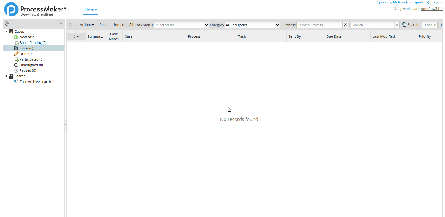 - If the user unarchives cases from workspaces where the process elements (like tasks and users) were deleted, the Unarchived cases can present problems like not listing in the Inbox.