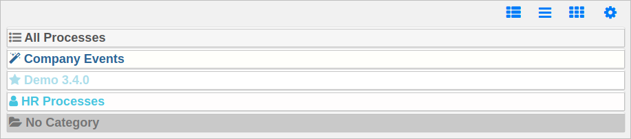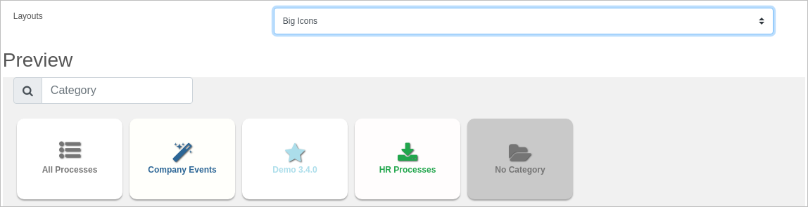 • Big Icons (Grid): This option displays all processes in a selected Category within a grid using big icons.