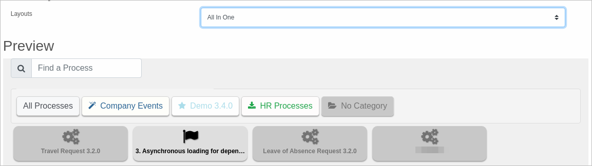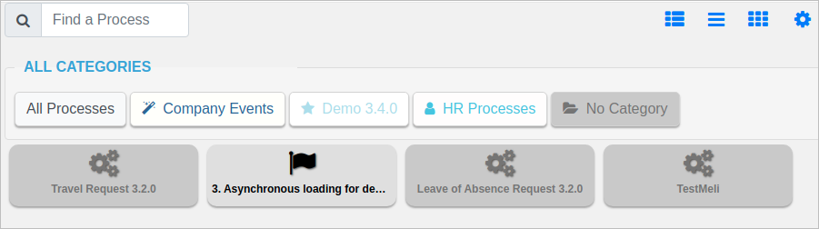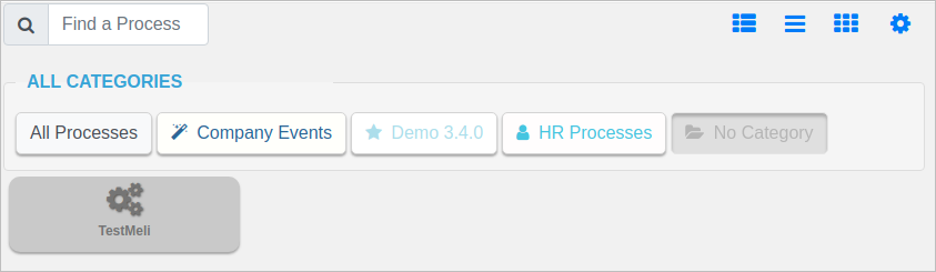 When you select a Category, all the processes related to that category displays below the ALL CATEGORIES container: