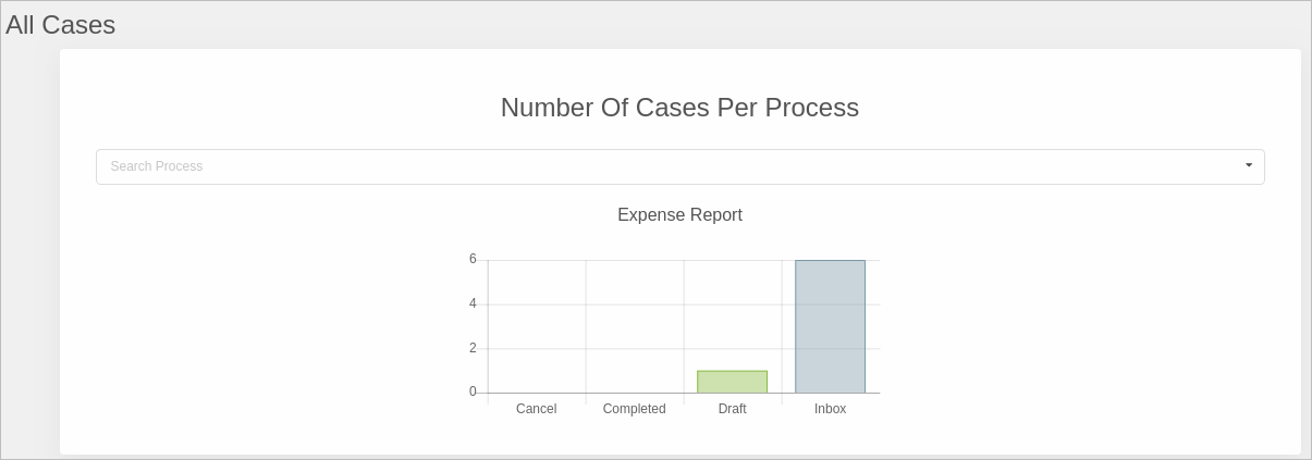 • All: This option displays all the cases created in ProcessMaker. This displays a graphic and a filter that takes the user back to the Inbox.