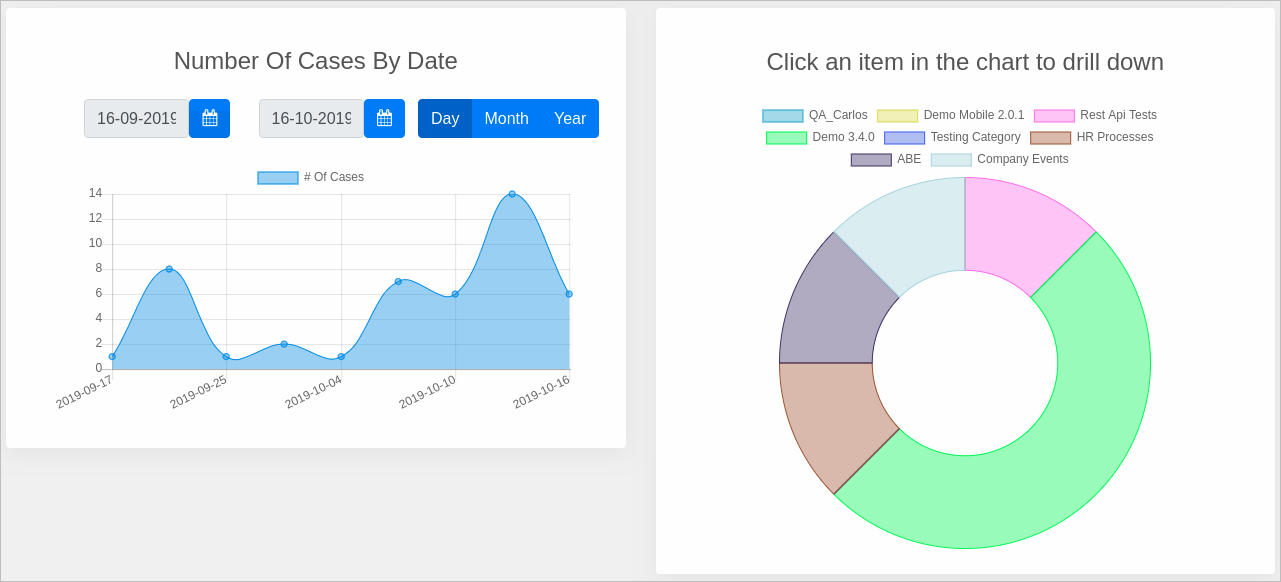 • A chart displaying the number of cases with the option of selecting a start and finish date.